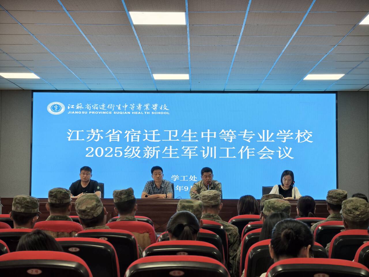 金秋时节,号角将鸣。9月7日下午,为确保2025级新生军训工作高质高效开展,宿迁卫校召开新生军训工作专题会议。校领导、人武部教官、新生班主任齐聚一堂,共绘军训蓝图,为新生们的“入学第一课”奠定坚实基础。