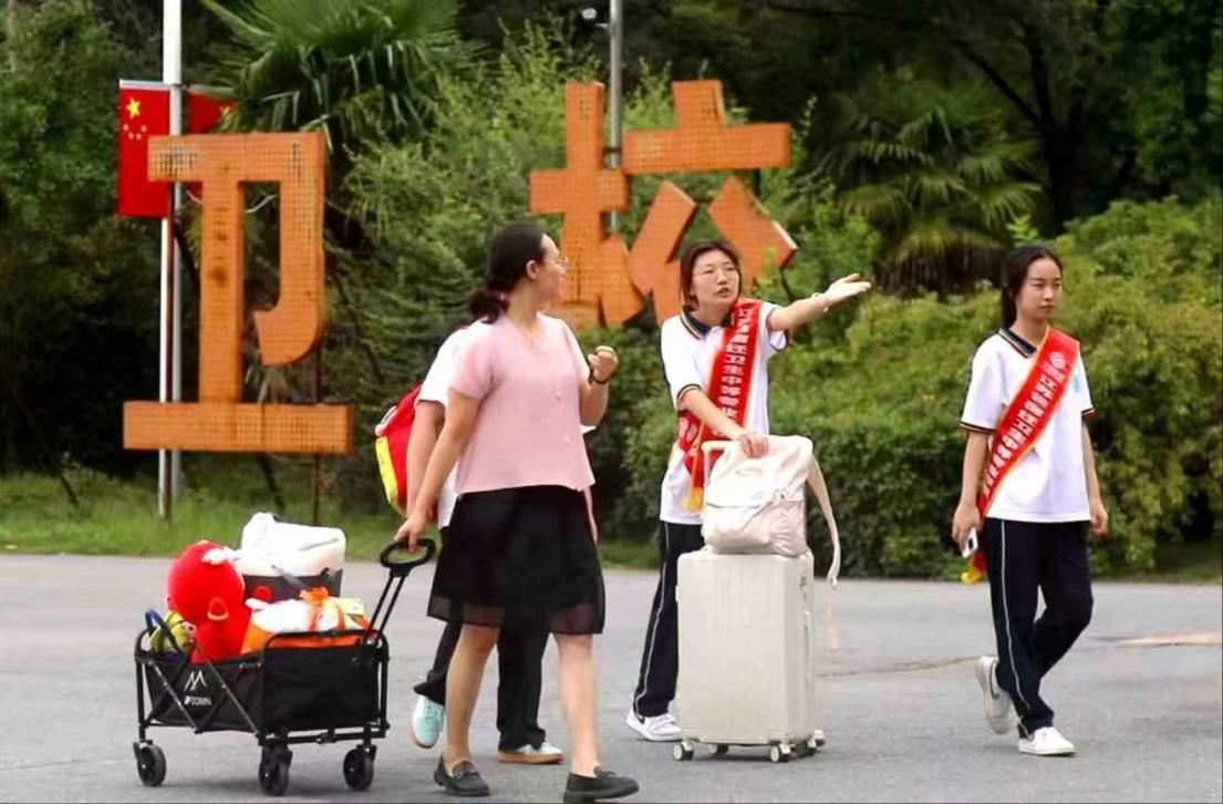 报到现场,青春身影穿梭不息。新生们步履坚定,家长陪伴左右,身着绶带的志愿者热情引导、主动相助,构成了一幅生动的迎新画卷。