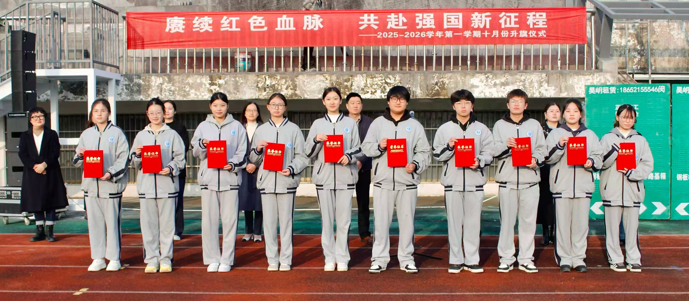 在雄壮的国歌声中,五星红旗冉冉升起,全体师生肃立行注目礼,红色血脉在国歌的旋律中赓续。