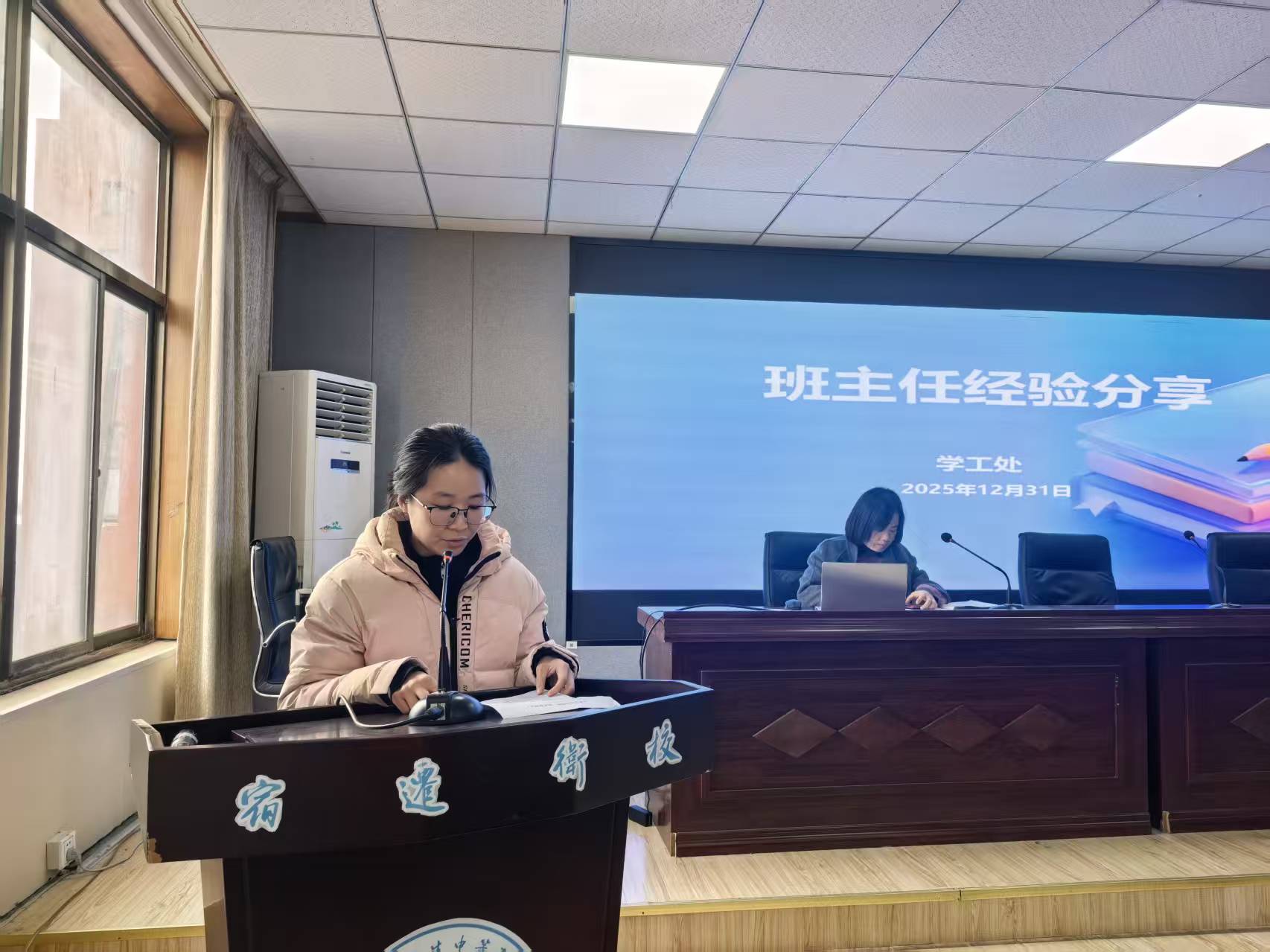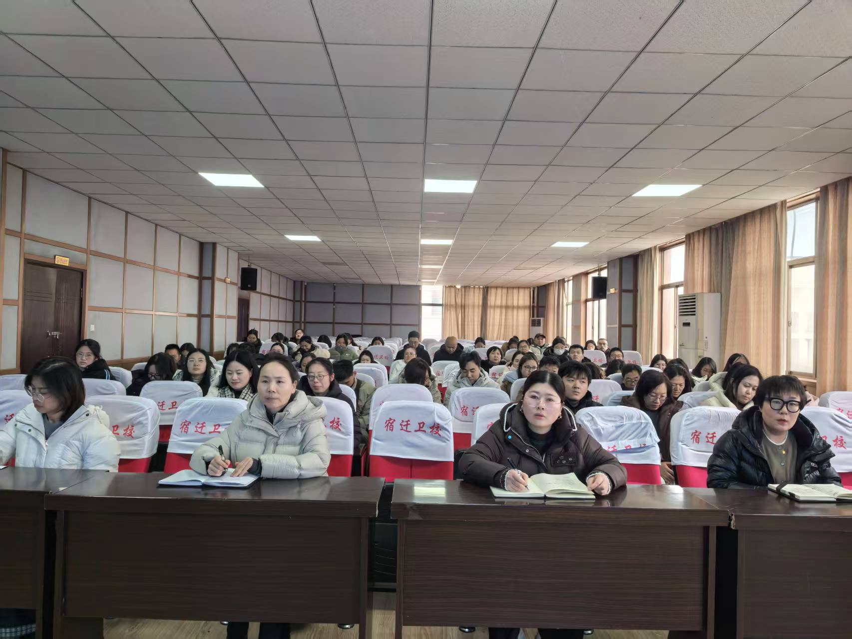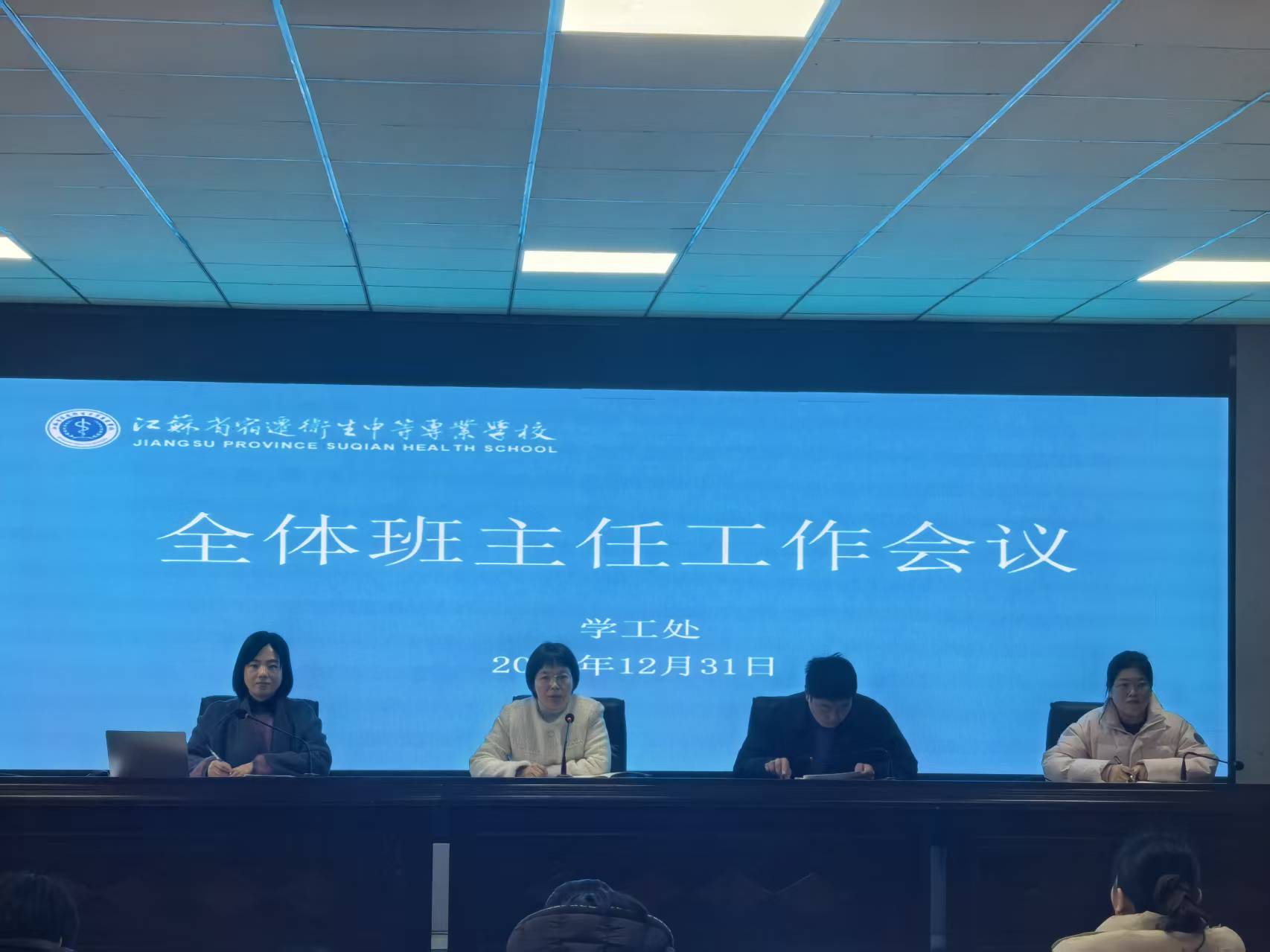 立德正途,用仁爱之灯照亮前路;集思聚力,以协同之智助力成长。为持续促进班主任在育人实践中的专业素养与创新能力,加强班级工作的整体规划与长效发展。2025年12月31日下午,宿迁卫校学工处在学校四楼会议室组织召开了十二月份全体班主任工作会议。校党委副书记、校长陈新颖,党委委员、副校长荣峰,学工处副处长杨阳,团委副书记周博,各系部学工主任及全体班主任参加了本次会议。会议由荣峰主持。