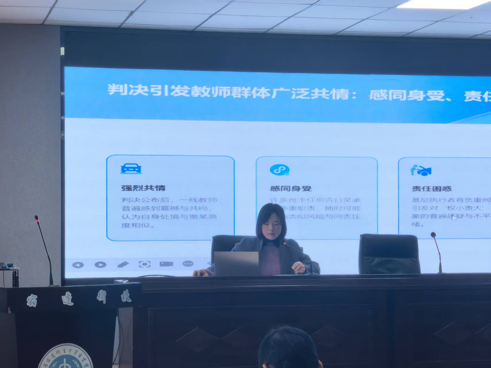 学工处副处长杨阳就近期学生管理制度与安全工作作专题部署。她对班主任选聘考核、学生干部管理等制度进行说明,并重点强调“1530”安全教育模式的落实要求,结合真实案例警示班主任切实履行安全管理职责,加强宿舍巡查、关注学生心理动态,推动安全管理工作具体化、场景化,严格执行请假离校等环节规范,全面筑牢校园安全防线。