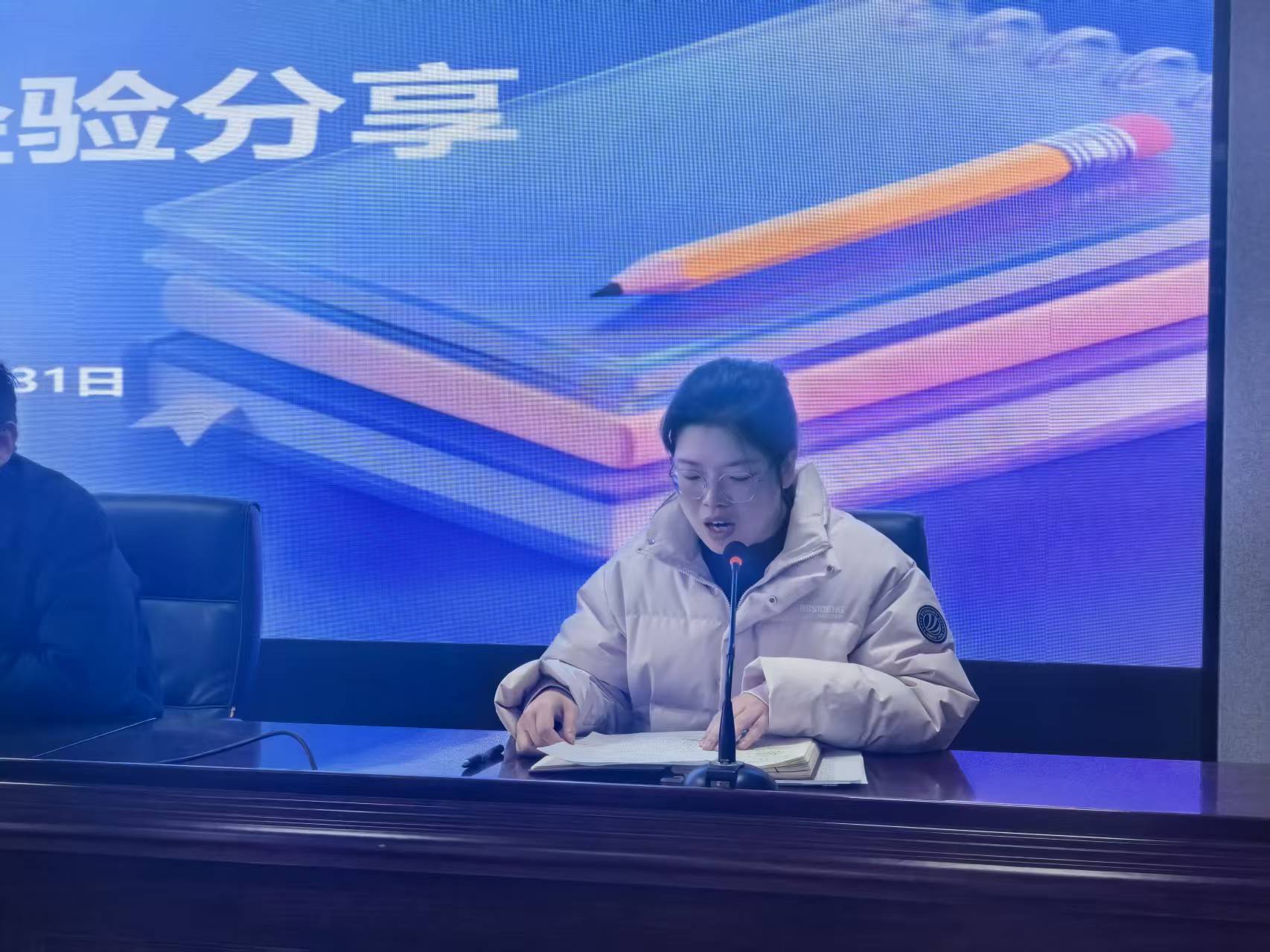 随后,团委副书记周博围绕12月份共青团工作开展情况进行汇报。她详细介绍了主题团课、“团旗飘飘”建设、阳光健步走、社团覆盖与学生干部队伍建设等常规工作的推进情况。同时,她也客观指出了当前在活动参与、平台使用等方面存在的不足,明确下一步将优化沟通机制,推动学生活动参与的均衡化,与班主任共同构建更具活力的育人平台。