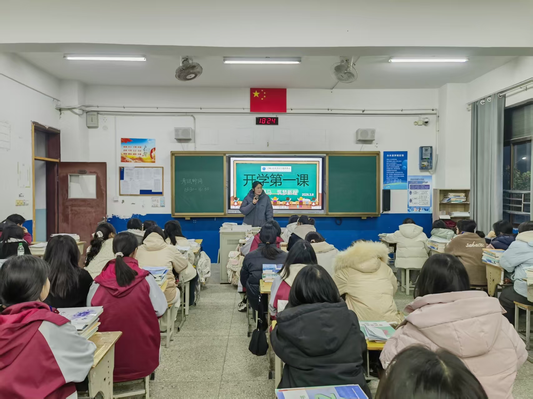 3月8日晚,全校各班同步开展以“新春策马 筑梦新程”为主题的开学第一课主题班会。学工处精心打磨课程内容,匠心设计“新学期 心感悟”“寒假拾光 马年新语”“安全常规记心间”“新学期 新目标”四大板块,将心理健康教育与安全教育深度融合,打造有温度、有深度、有力度的“开学必修课”。