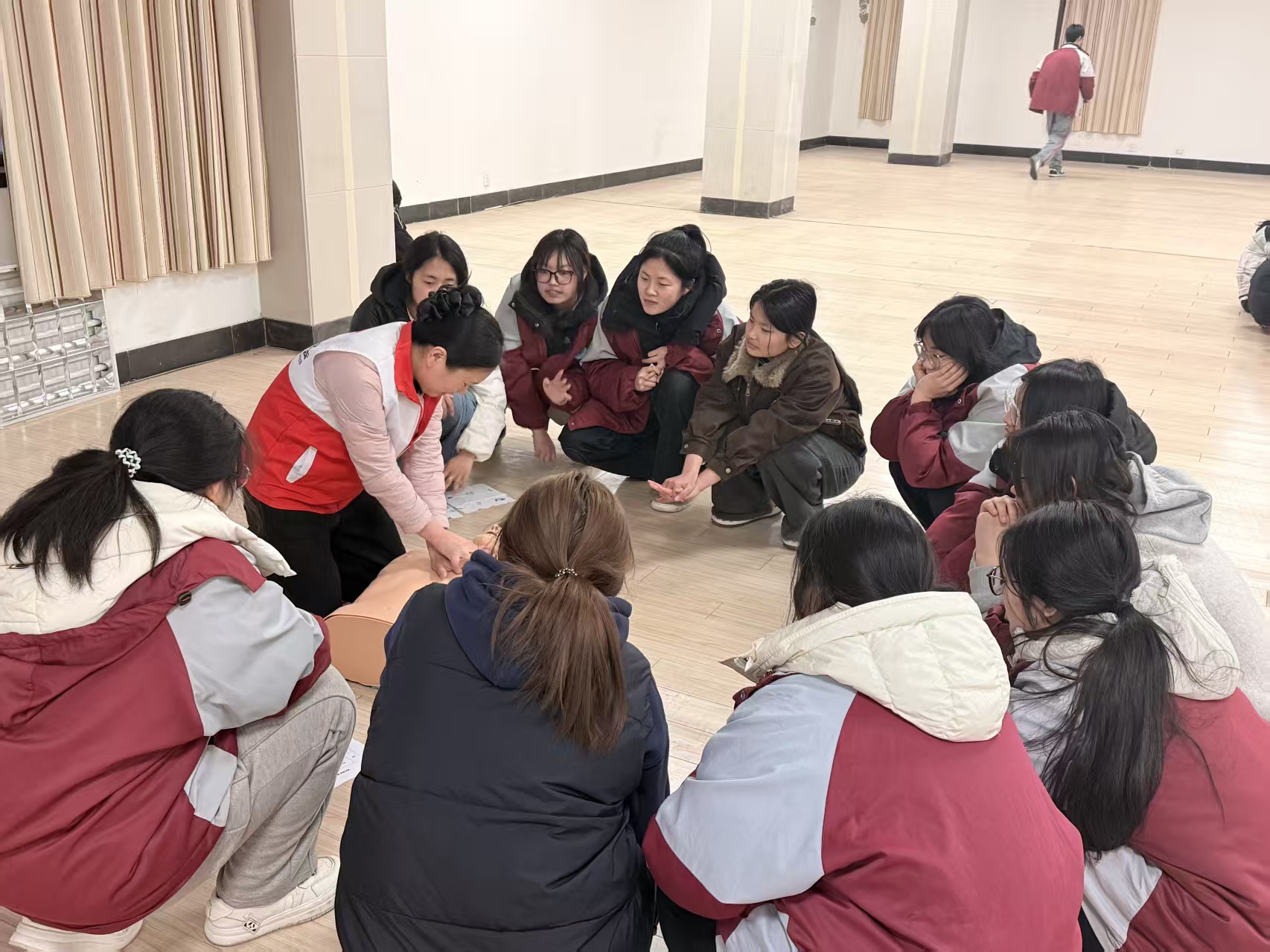 为确保志愿服务质量,宿迁卫校志愿者提前一个月进入备战状态,系统开展赛前训练。赛道观察员与医疗小助手围绕马拉松赛事常识、应急救护技能、岗位服务流程等内容接受专项培训,并通过考核持证上岗。同时,针对助威表演、秩序维护、选手引导等任务,团队多次开展模拟演练,不断优化配合流程。