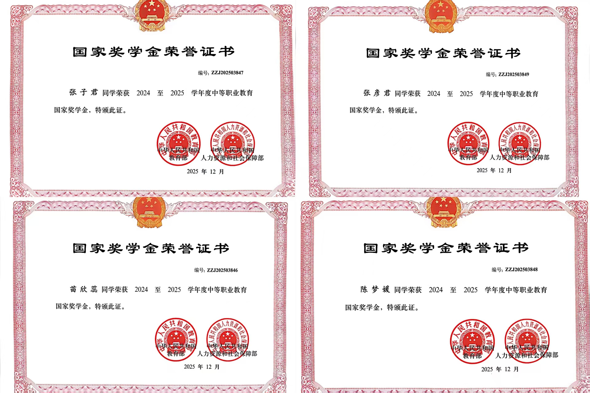 近日,国家教育部正式下发荣誉证书,宿迁卫校张子君、苗欣蕊、张彦君、陈梦媛4民同学荣获2024—2025学年中等职业教育国家奖学金。